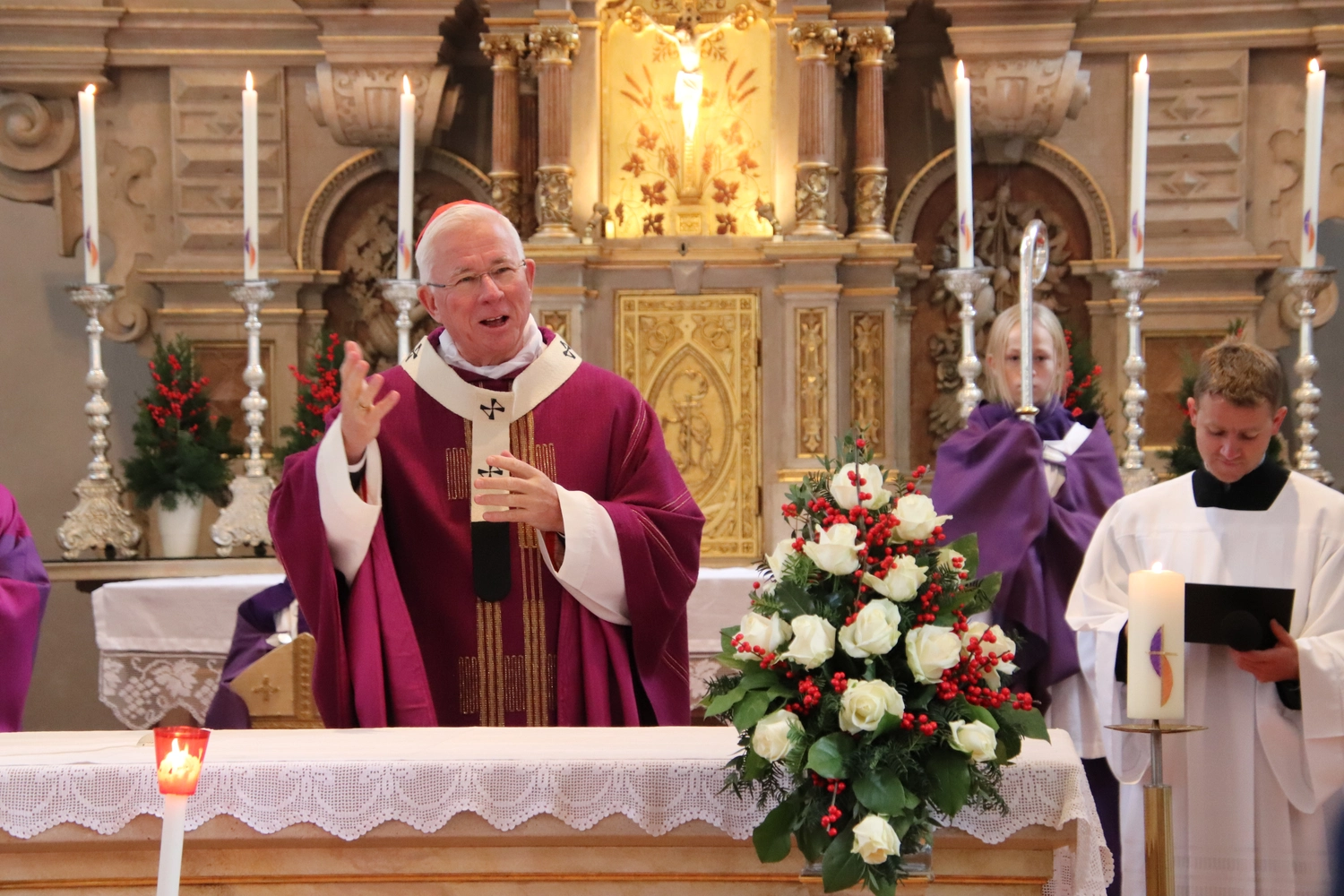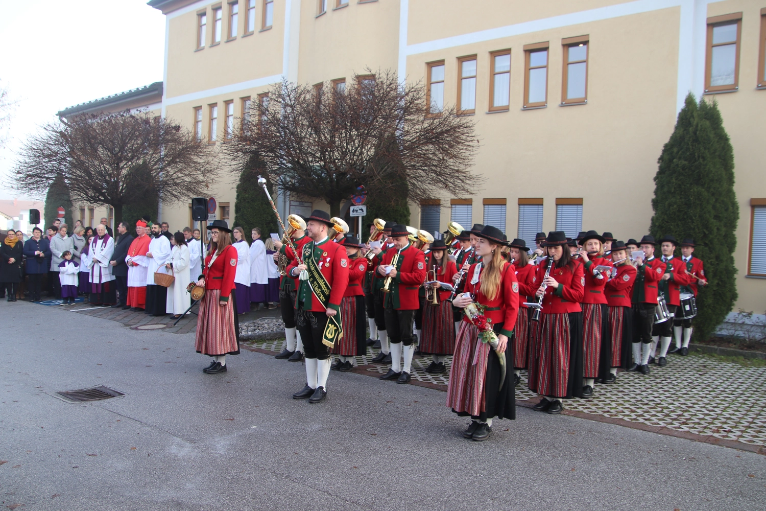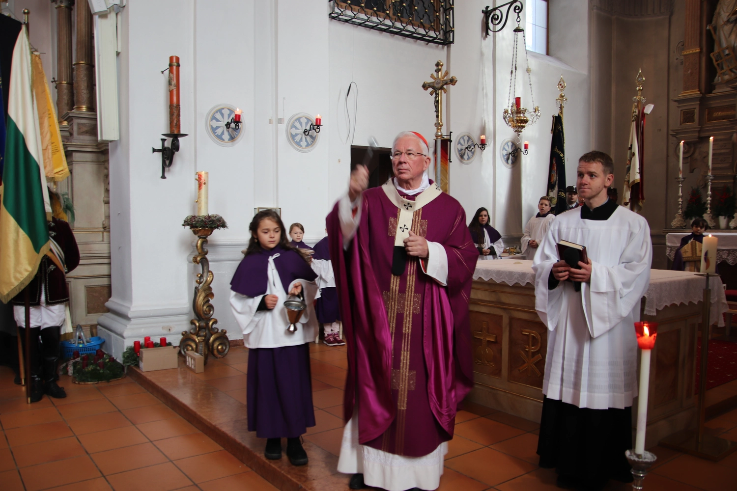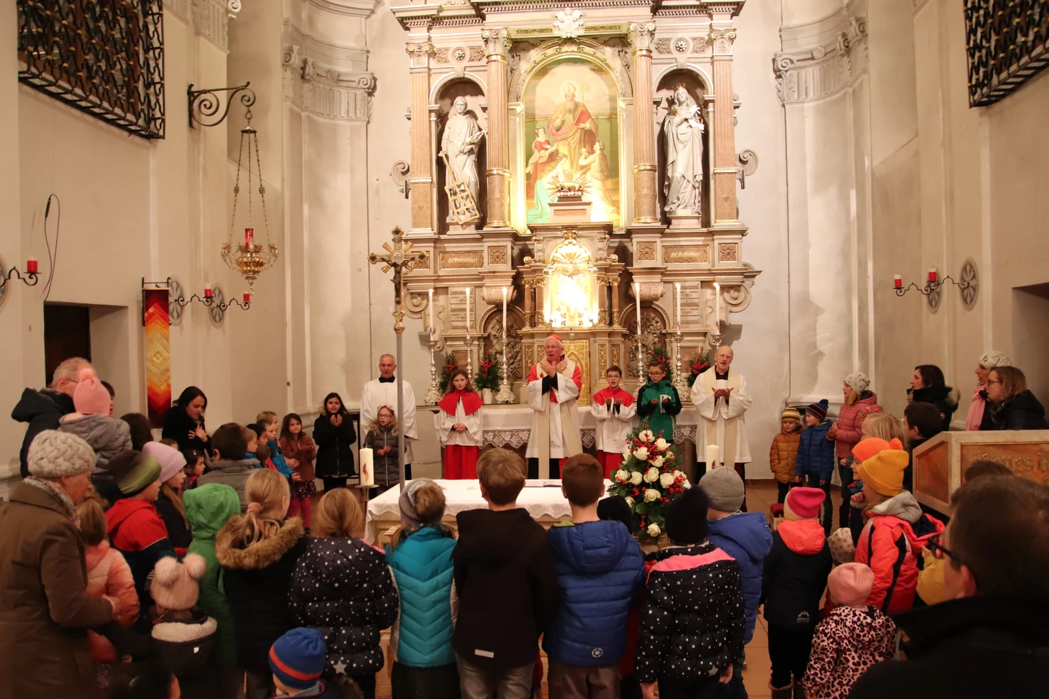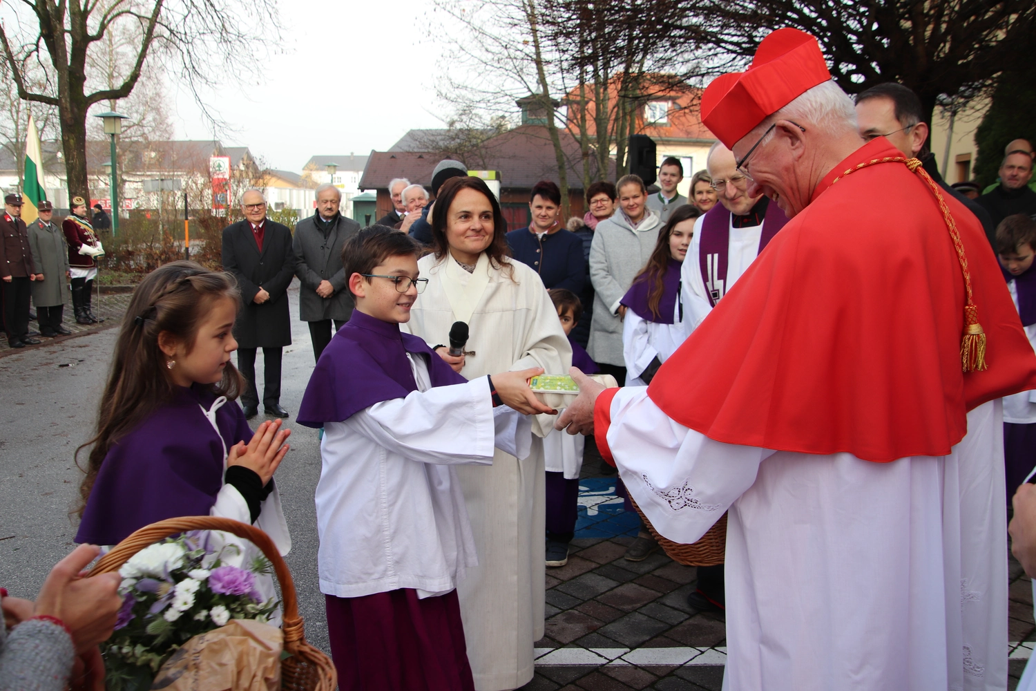 Am ersten Adventwochenende bereiste unser Herr Erzbischof die Pfarre Neumarkt. Samstagvormittag besuchte er die Bewohner:innen des Seniorenwohn-hauses und segnete die Adventkränze. Am Nachmittag versammelten sich zahlreiche Familien zur Kinder-segnung in der Kirche. Das Evangelium von der Kindersegnung Jesu wurde vom Junge Kirche Team mit Bildern als Klanggeschichte lebhaft erzählt. Kinder und Erwachsene erhielten den Einzelsegen des Bischofs. Unser Kinderchor sorgte für die musikalische Gestaltung. Im Anschluss nahm der Herr Erzbischof an der Sitzung des Pfarrgemeinderates teil, wo es zu einem regen Austausch kam. Am Sonntag wurde das Oberhaupt der Erzdiözese Salzburg von Vereinen und Pfarrgemeinde ehrwürdig empfangen und vom Ärztezentrum durch den Ort in die Stadtpfarrkirche geleitet. Theresa und Simon überreichten dem Bischof Gaben aus Neumarkt (Honig, Brot, Eier, Drechslerschale, Blumen, Schokolade, Kerze) und verwiesen in einem Gedicht auf die jeweils zugeordneten Heiligen. Die Heilige Messe wurde musikalisch von Organist Severin Aigner, sowie dem Bläserensemble der TMK gestaltet. Viele Ministrant:innen hatten sich zur Feier eingefunden – vielen Dank!