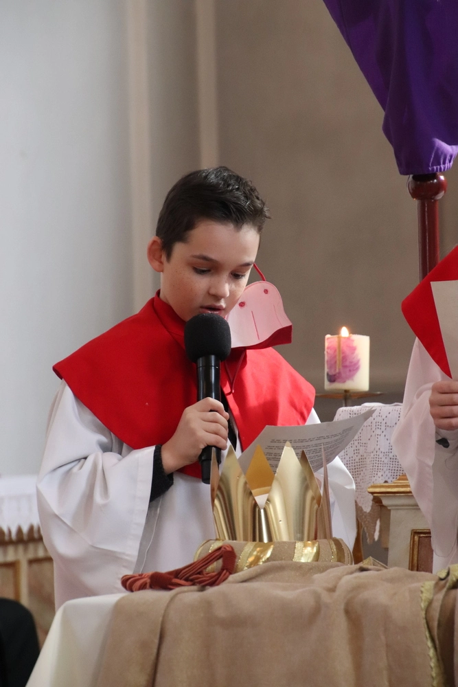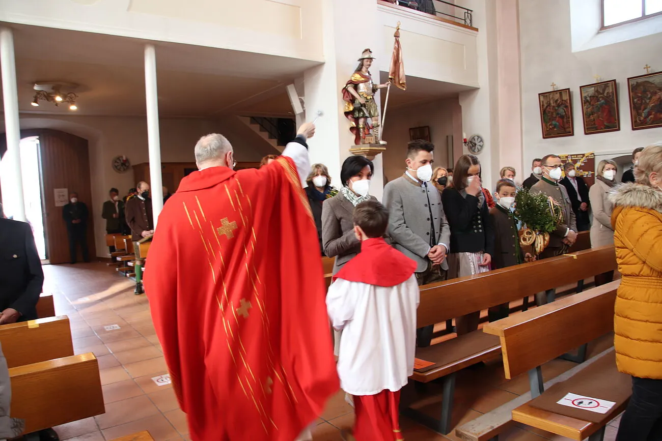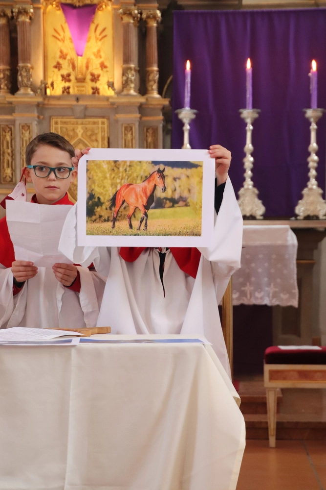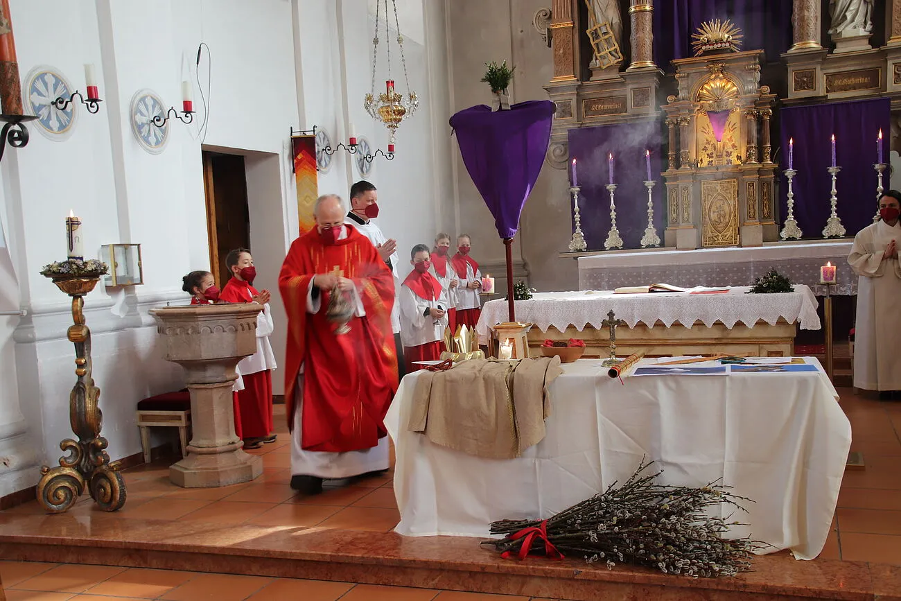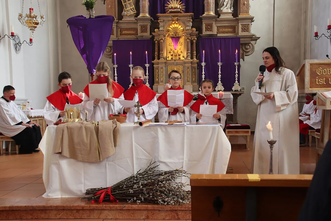 Zum Familiengottesdienst fanden sich zahlreiche große und kleine Mitfeiernde ein! Die MinistrantInnen zeigten anhand von Bildern und verschiedensten Gegenständen, inwiefern sich Jesus von einem gewöhnlichen König unterscheidet. Das Junge Kirche Team erzählte die Passion in kindgerechter Art und Weise mit Bildern. Für einen wunderbaren musikalischen Rahmen sorgte das Bläserensemble der Trachtenmusikkapelle.