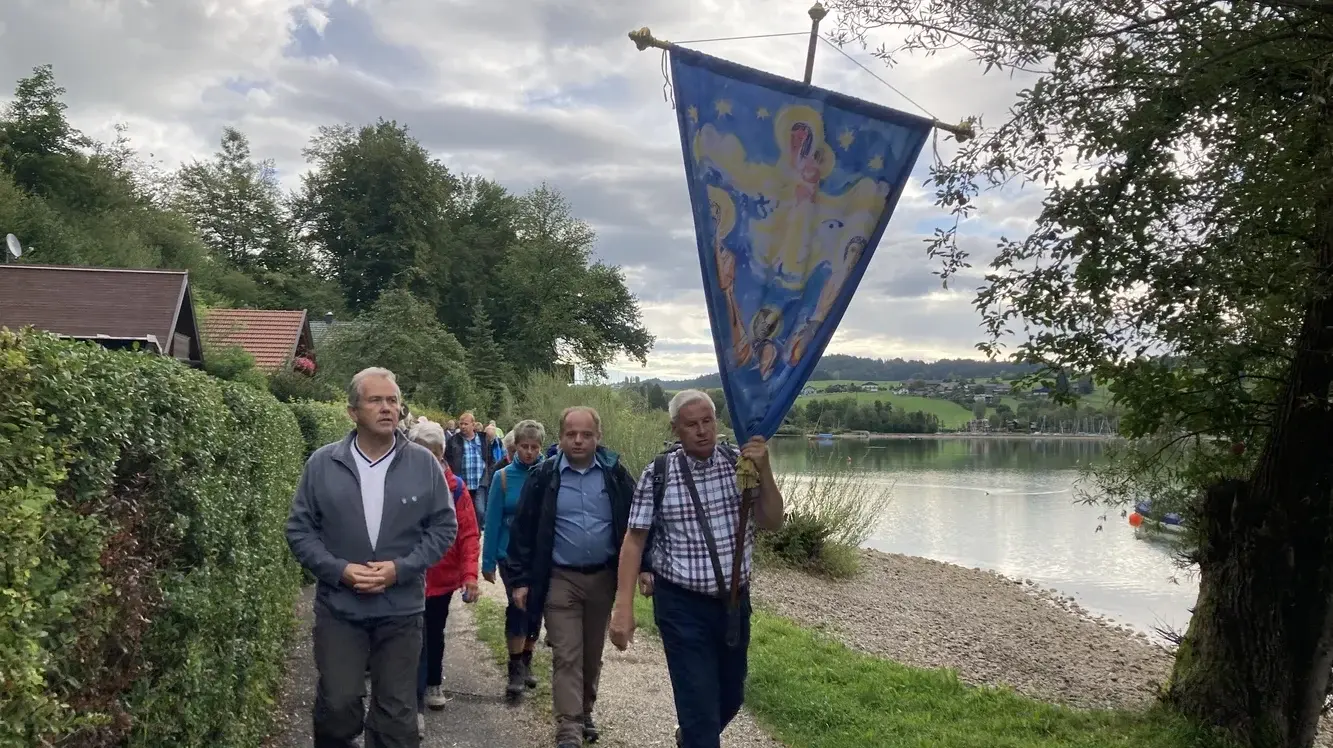 Vergangenen Samstag machten sich zahlreiche Pil-ger:innen auf den Weg, den Wallerseee zufuß zu umrunden. Es war bereits die 15. Wallfahrt. Zu diesem Jubiläum wurden die Pfarrpatrone von Neumarkt, Köstendorf, Seekirchen und Henndorf (=auch auf der Wallfahrtsfahne) näher betrachtet. An den Stationen gaben Leute Einblick in die Kirchen ihrer Pfarren und das Leben der Pfarrpatrone Nikolaus, Gottesmutter Maria, Petrus und Vitus. Anhand passender Schriftstellen, Lied und Gebet zu den Heiligen ergänzten wir, Pfarrer Gottfried Laireiter und ich, die Wegstationen rund um den See. Eine weitere Besonderheit sorgte die Begrüßung der Pilger:innen durch die Bürgermeister der jeweiligen Gemeinde mit Überreichung eines kleinen Geschenks. Die feierliche Abschlussmesse in Neufahrn wurde vom Chor Vocalisma gestaltet.