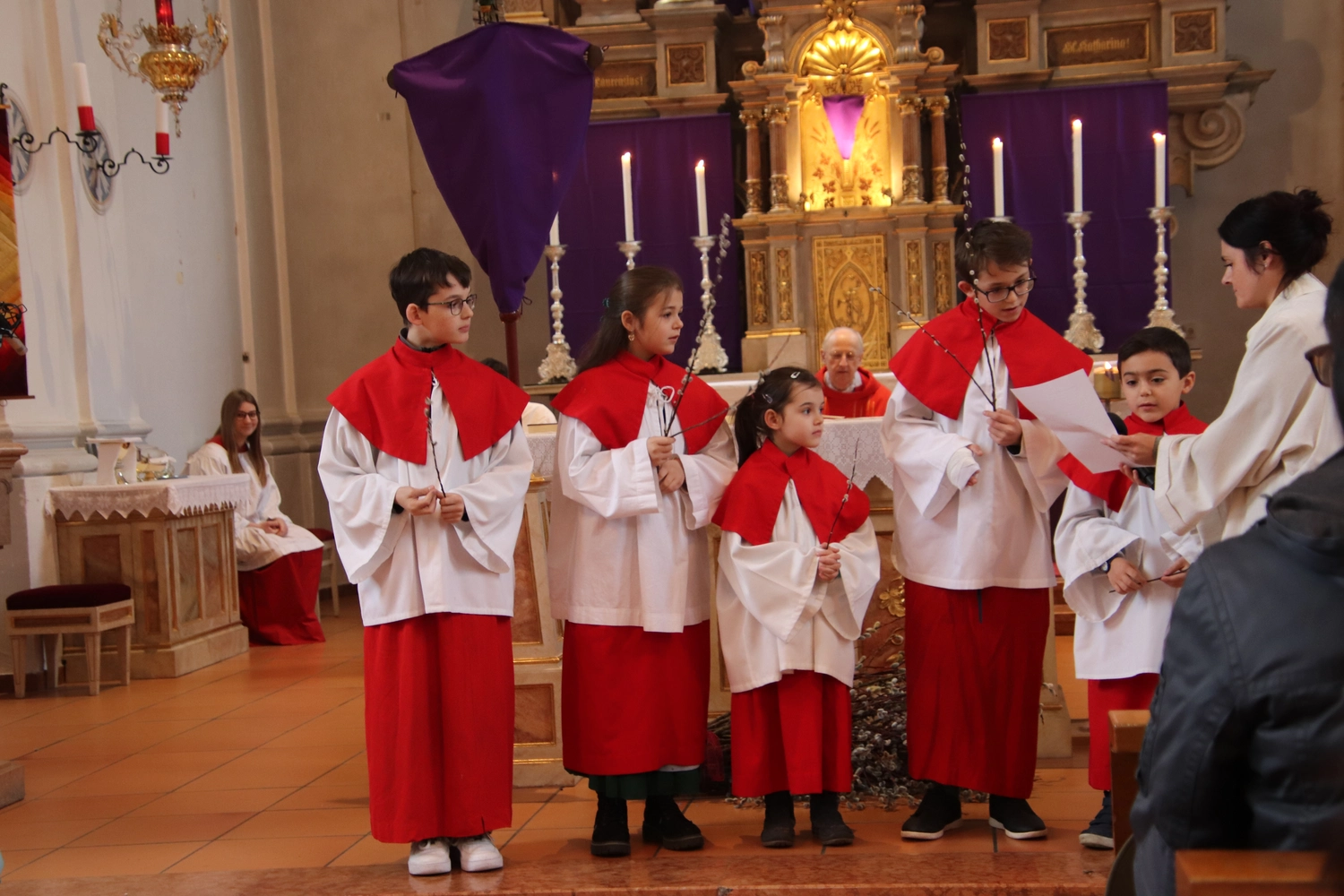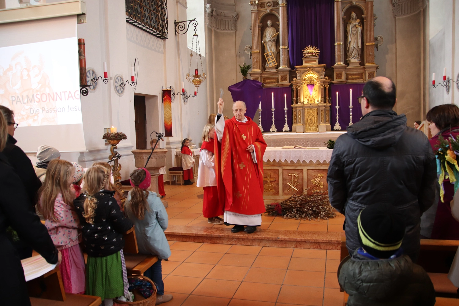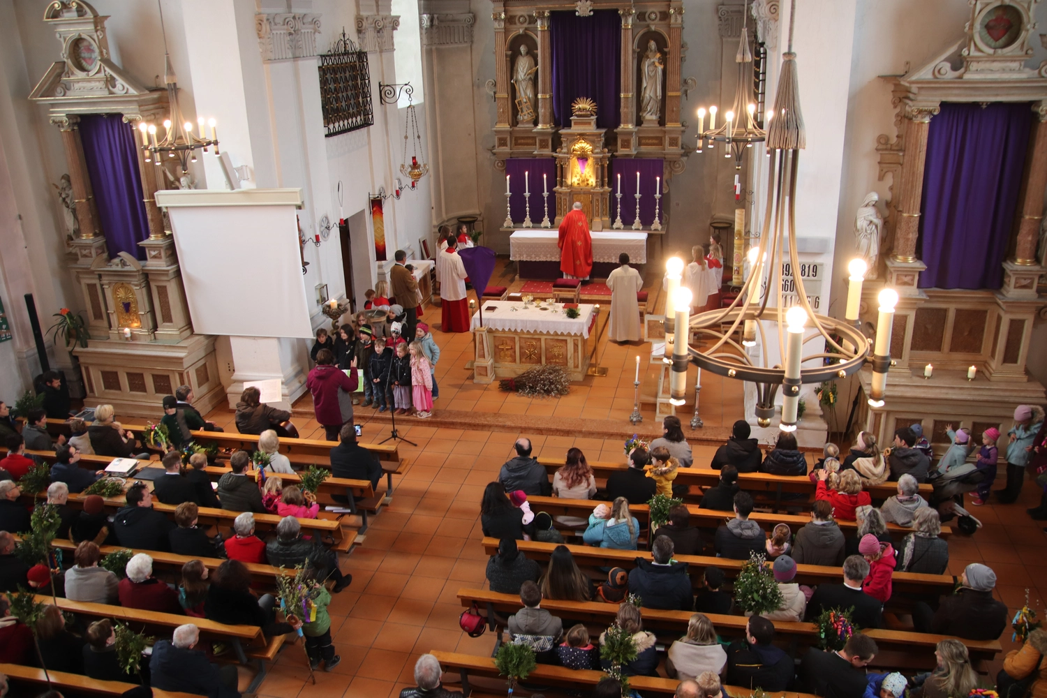 Viele Kinder und Erwachsene versammelten sich zur Segnung der Palmzweige und Feier der Familienmesse am