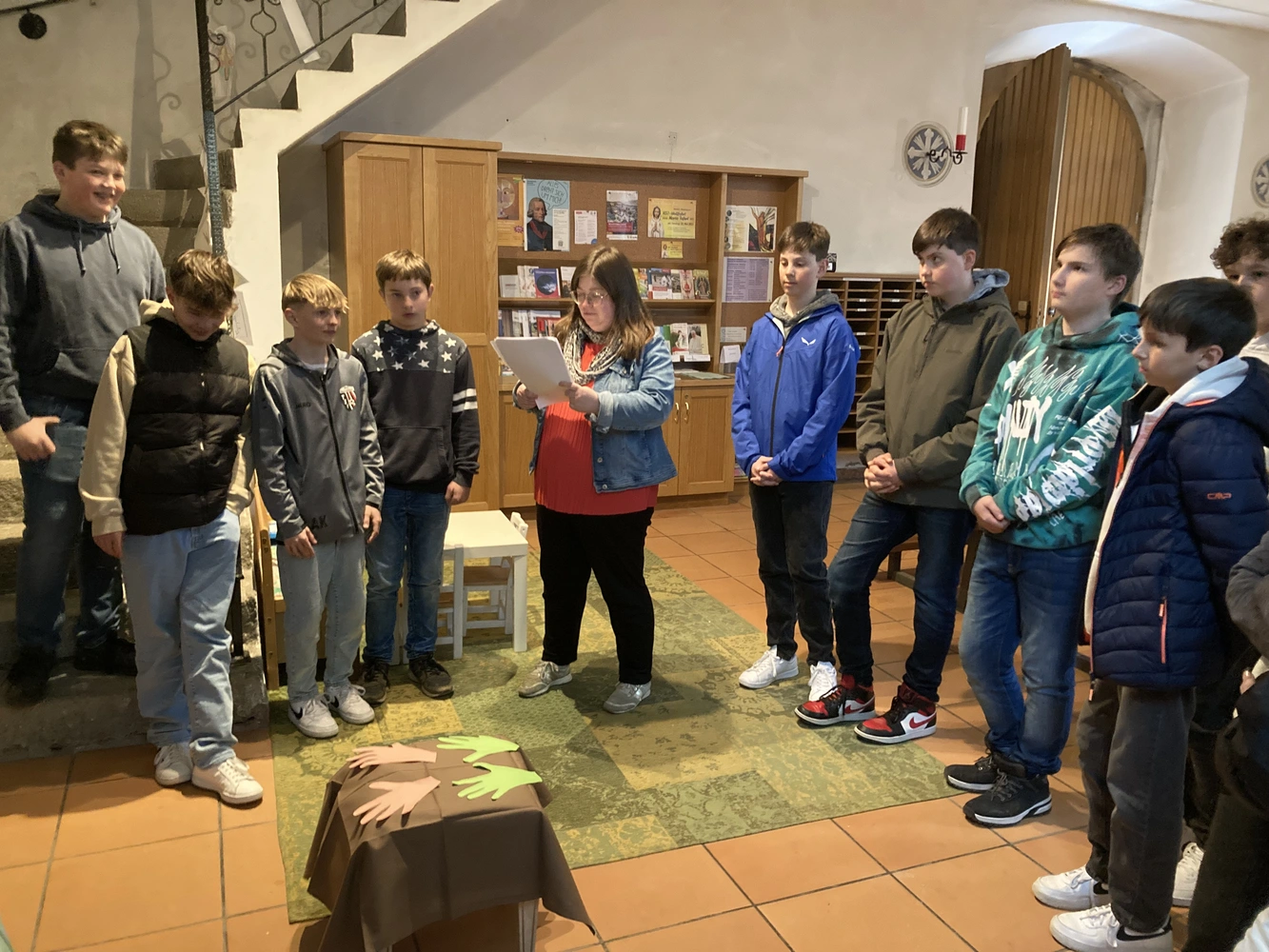 Mutige junge Damen und Herren lasen eine „Unterhaltung der Palmzweige beim Einzug Jesu in Jerusalem“: Ein