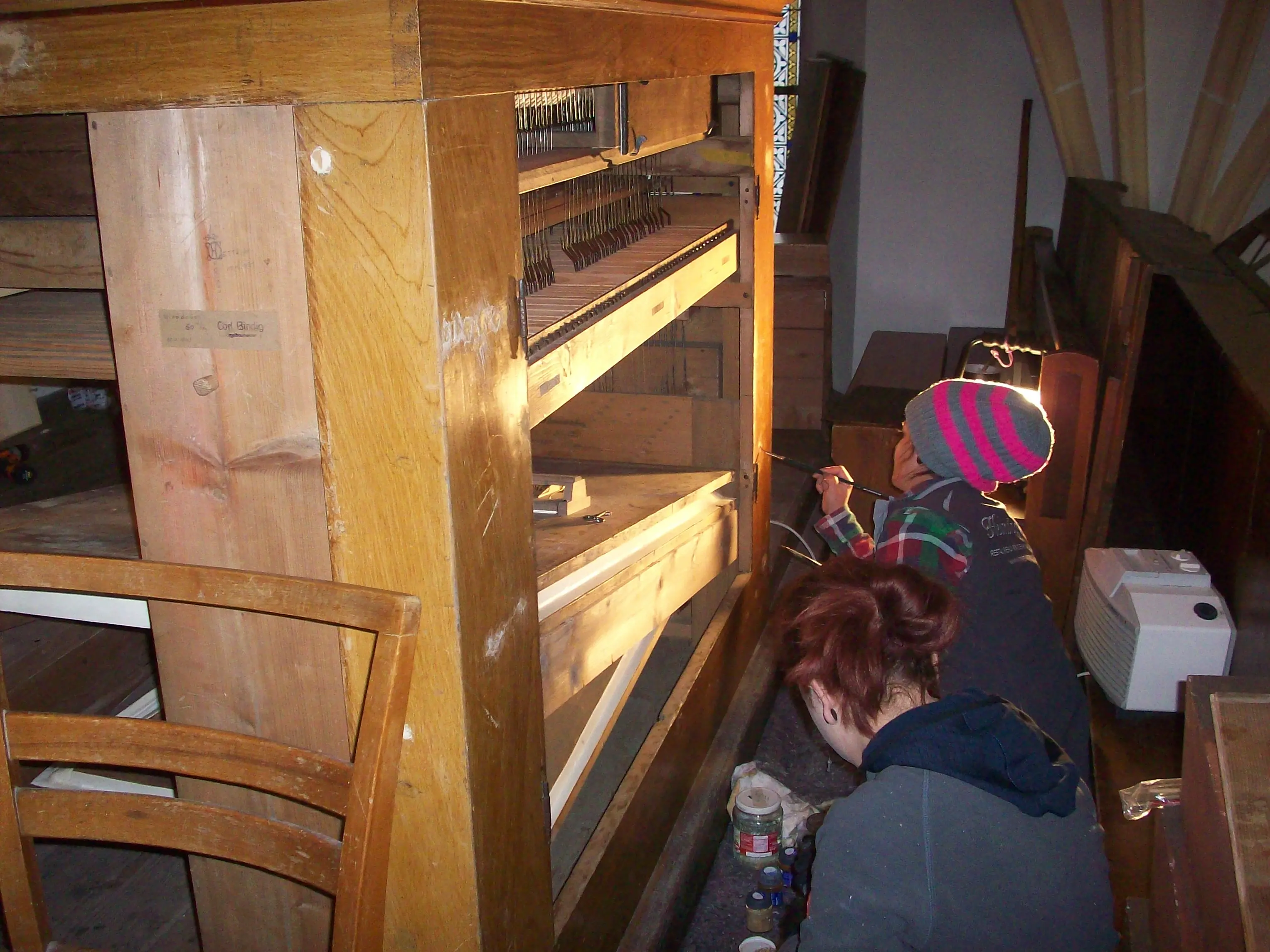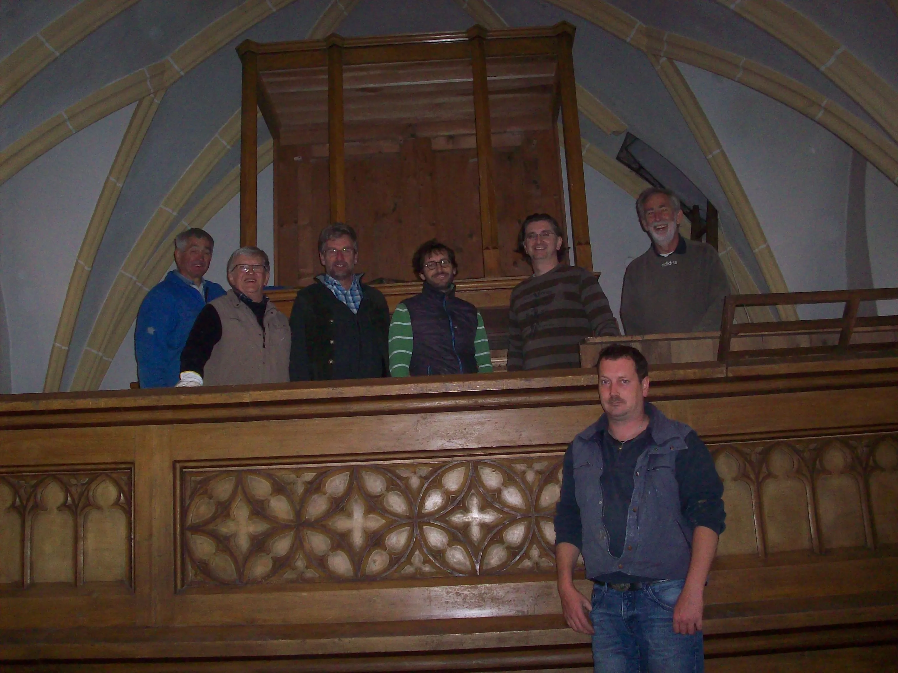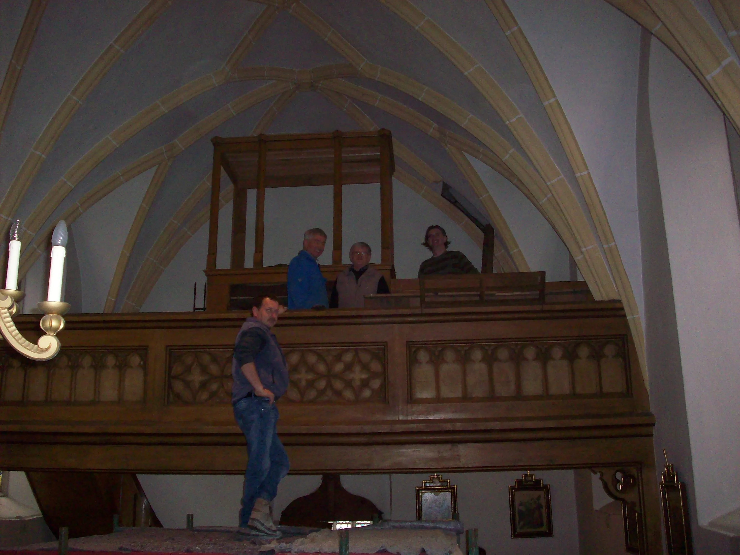 Herr Helminger, Restaurator und Stukkateur in Hof bei Salzburg, begutachtete das Orgelgehäuse und die Empore. Er sprach über die Reinigungsarbeiten und Ausbesserungen.