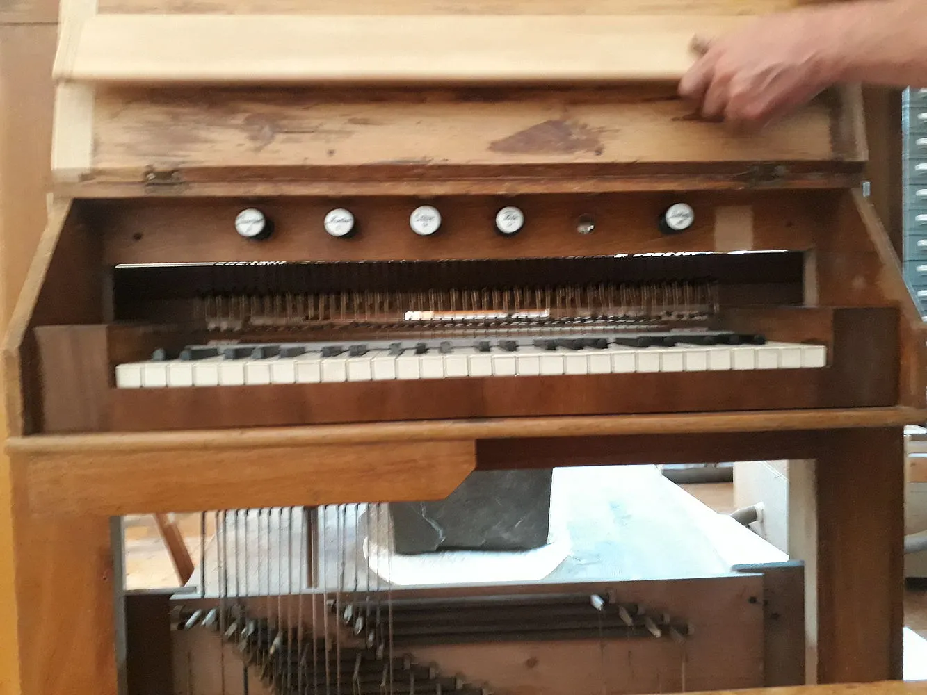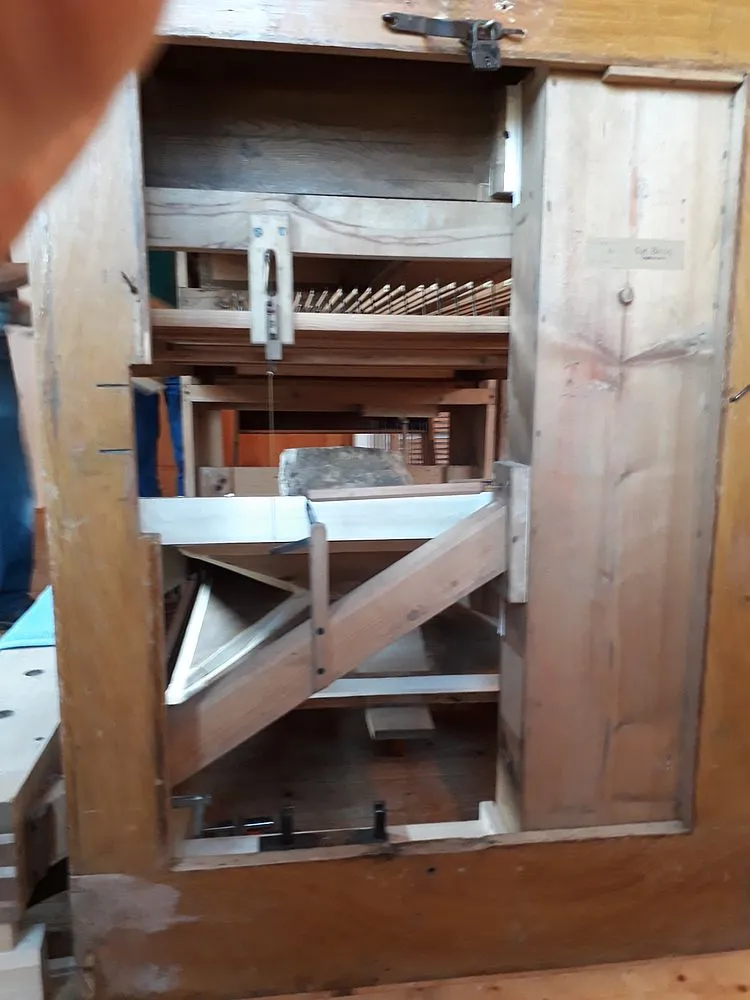 Im Frühjahr 2017 wurde die Orgel von den Mitarbeitern des Herrn Linder und mit unserer Mithilfe abgebaut. Herr Linder erklärte uns, dass der Motor der Orgel neben der Orgel versenkt wird, um bei Reinigungsarbeiten einen besseren Zugang zu haben. Bei abgehaltenen Ausschuss-Sitzungen wurde über die anfallenden Arbeiten gesprochen, über den Kontostand sowie über weitere Spendensammlungen. Ein Besuch der Orgelbauwerkstatt Linder wurde vorgeschlagen.