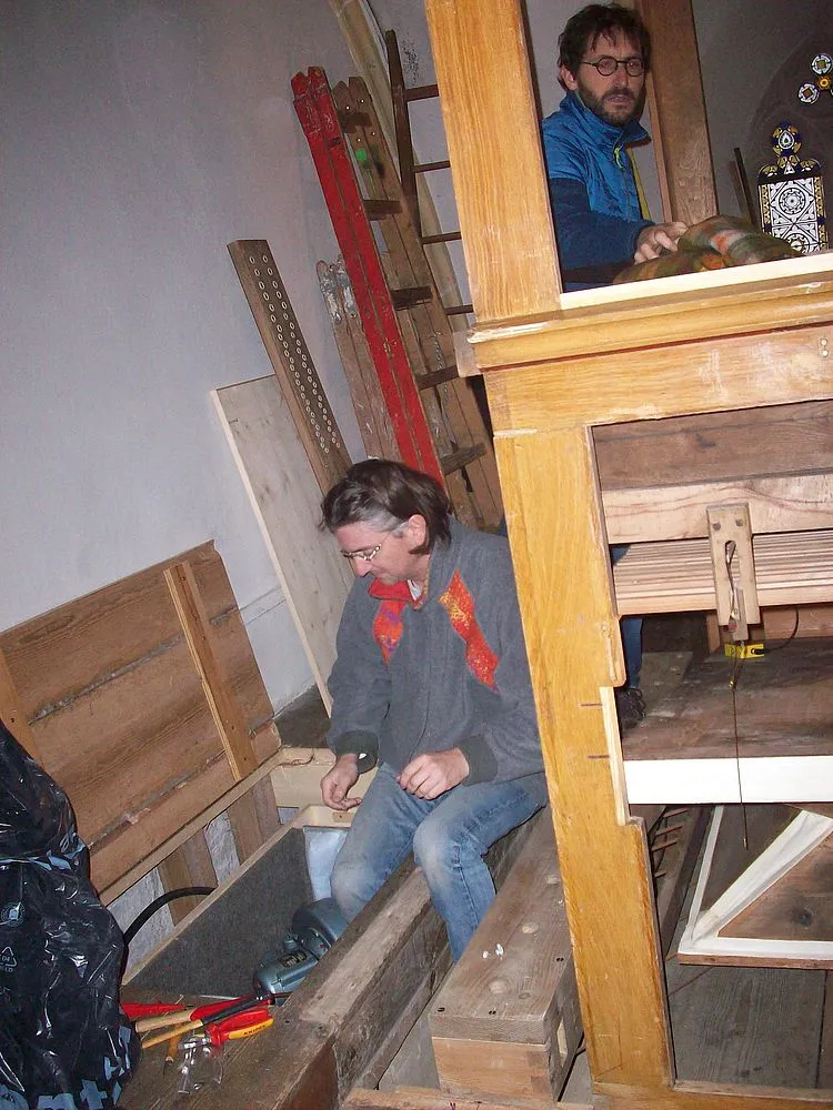 Ende Oktober hatten die Brüder Johann und Thomas Frauenschuh ihre Arbeiten abgeschlossen, Materialien und Arbeitsstunden durfte ich als Spende verbuchen. Ein Danke den beiden Fachleuten. Von Martin Hager, Wengler Gottlieb und mir Johannes Hager, wurde das Gerüst für den Orgelaufbau aufgestellt. Von Herrn Linder und seinen Mitarbeitern sowie unter der Mithilfe von Martin Hager, Franz Graml, Martin Hölzl sen. und mir wurde die Orgel in 2 Tagen aufgestellt und das Gerüst abgebaut. Ein Danke meinen Helfern.