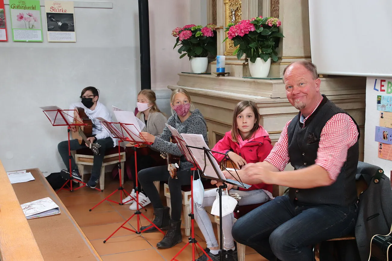 „Singen und tanzen vor dem Herrn“ lautete das Motto der Gottesdienste, in denen besonders das Leben gefeiert wurde. Gott auf diese Weise zu loben bringt ganz etwas Neues in unsere Kirche. Jesus hat einmal gesagt, dass jene, die wie Kinder werden, zu Gott kommen. Singen und tanzen ist auf jeden Fall etwas, das ganz den Vorlieben unserer Kinder entspricht. Musikalisch gestaltet wurden beide Messen am 6. Juni von Roland Stiegler und seinen GitarrenschülerInnen – lieben Dank für die stimmungsvollen Gitarrenklänge und den tollen Gesang!