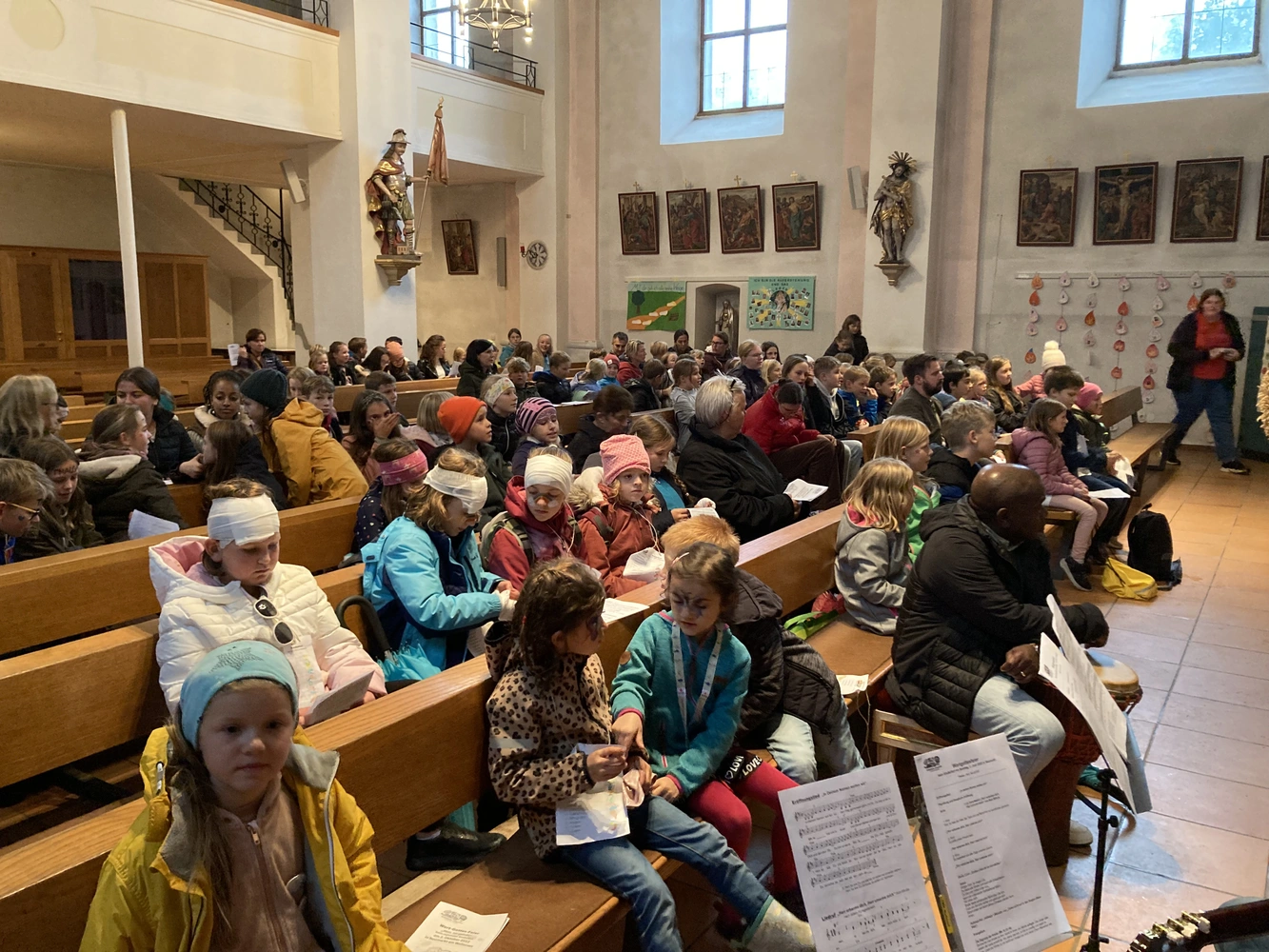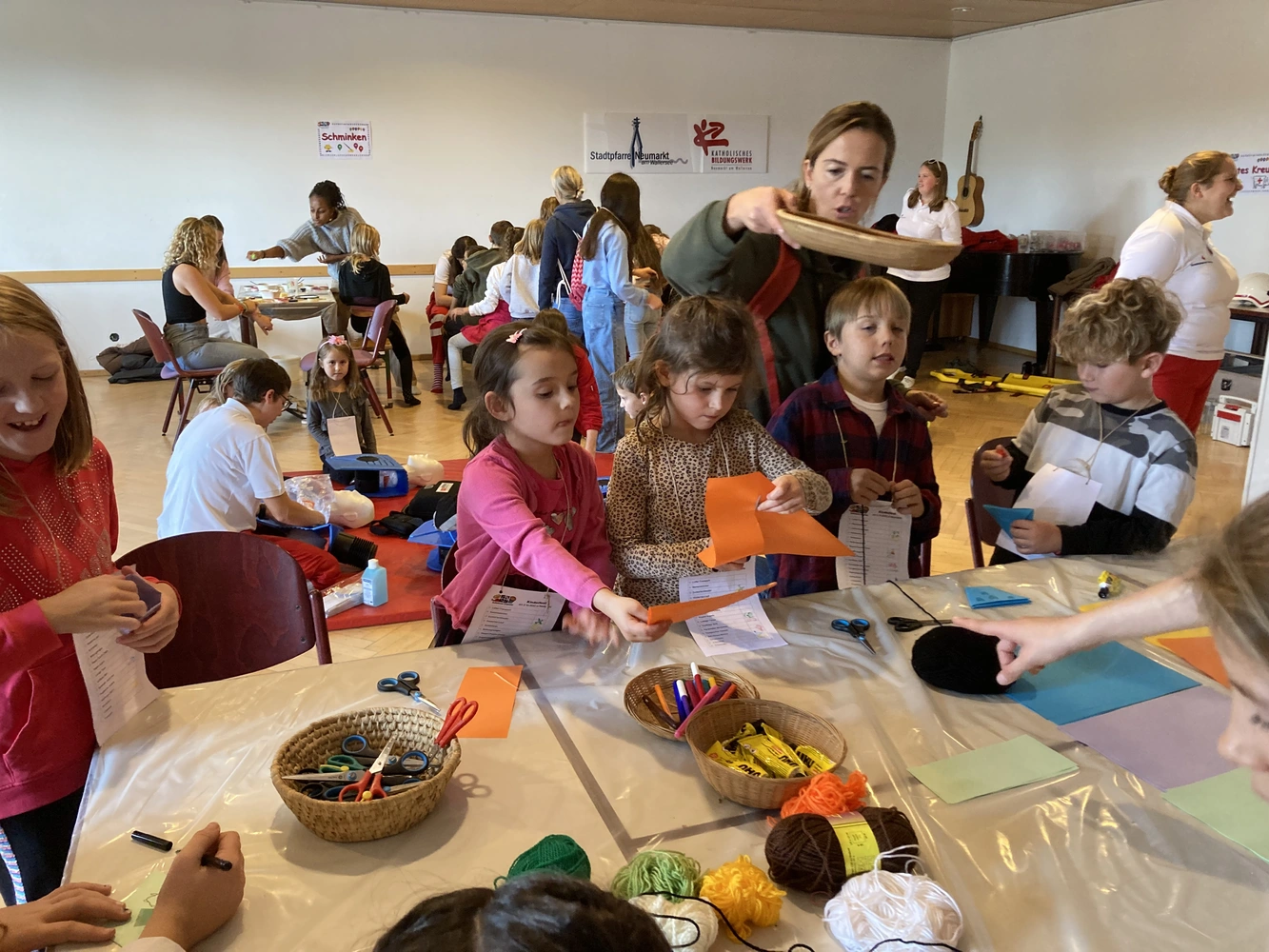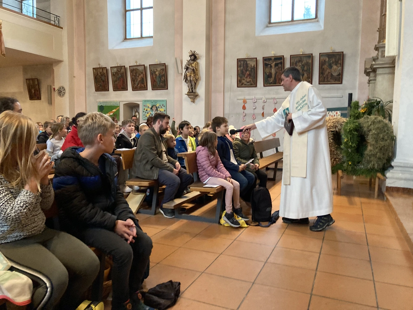 Am 2. Oktober fand das Kinderfest für Jungscharkinder und Ministrant:innen der Dekanate Köstendorf und Thalgau bei uns in Neumarkt statt. Rund 130 Kinder, sowie ihre Begleiter:innen verbrachten den Nachmittag in Pfarrhof und VS Turnsaal. An den 15 Spielstationen wurde viel Geschicklichkeit und Kreativität sichtbar! Das Rote Kreuz schminkte „Wunden“ und zeigte den Kindern, wie Verbände anzulegen sind. Auch die richtige Beatmung und der Krankentransport im Notfall wurden erprobt. Zu den neuesten Hits wurde getanzt; und Allerlei Schönes gebastelt. Für einen guten Rhythmus im Pfarrhof sorgten die Trommler. Unsere Neumarkter Crew war Gastgeber-Pfarre und daher für die kulinarische VersorgungJ zuständig! Kuchen, Obst, Würstel und Getränke wurden an die vielen jungen Gäste ausgegeben. Der gemeinsame Gottesdienst mit BV Harald Mattel rundete den lustigen Nachmittag ab.