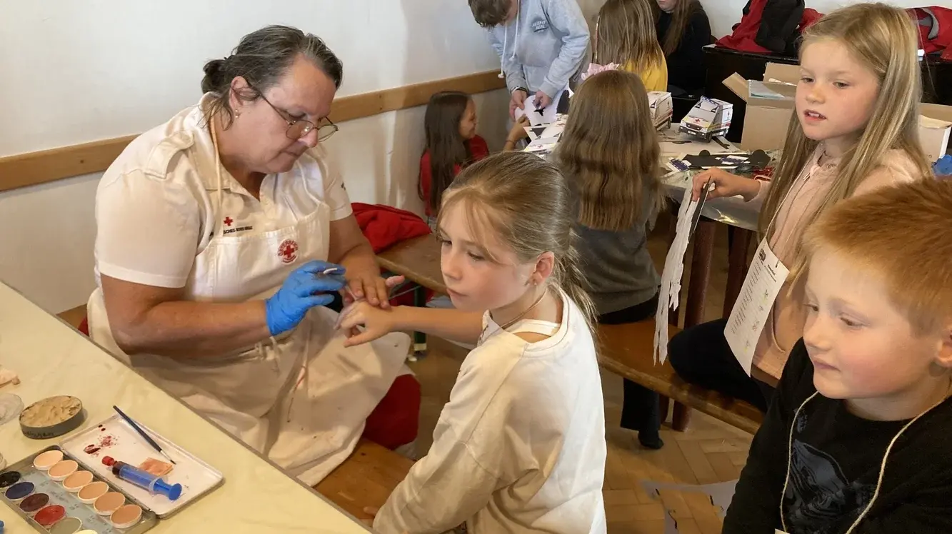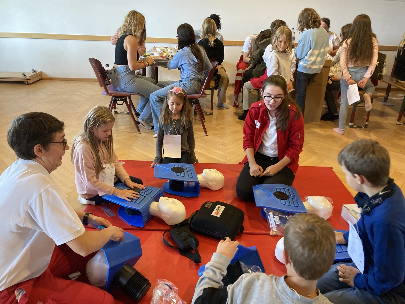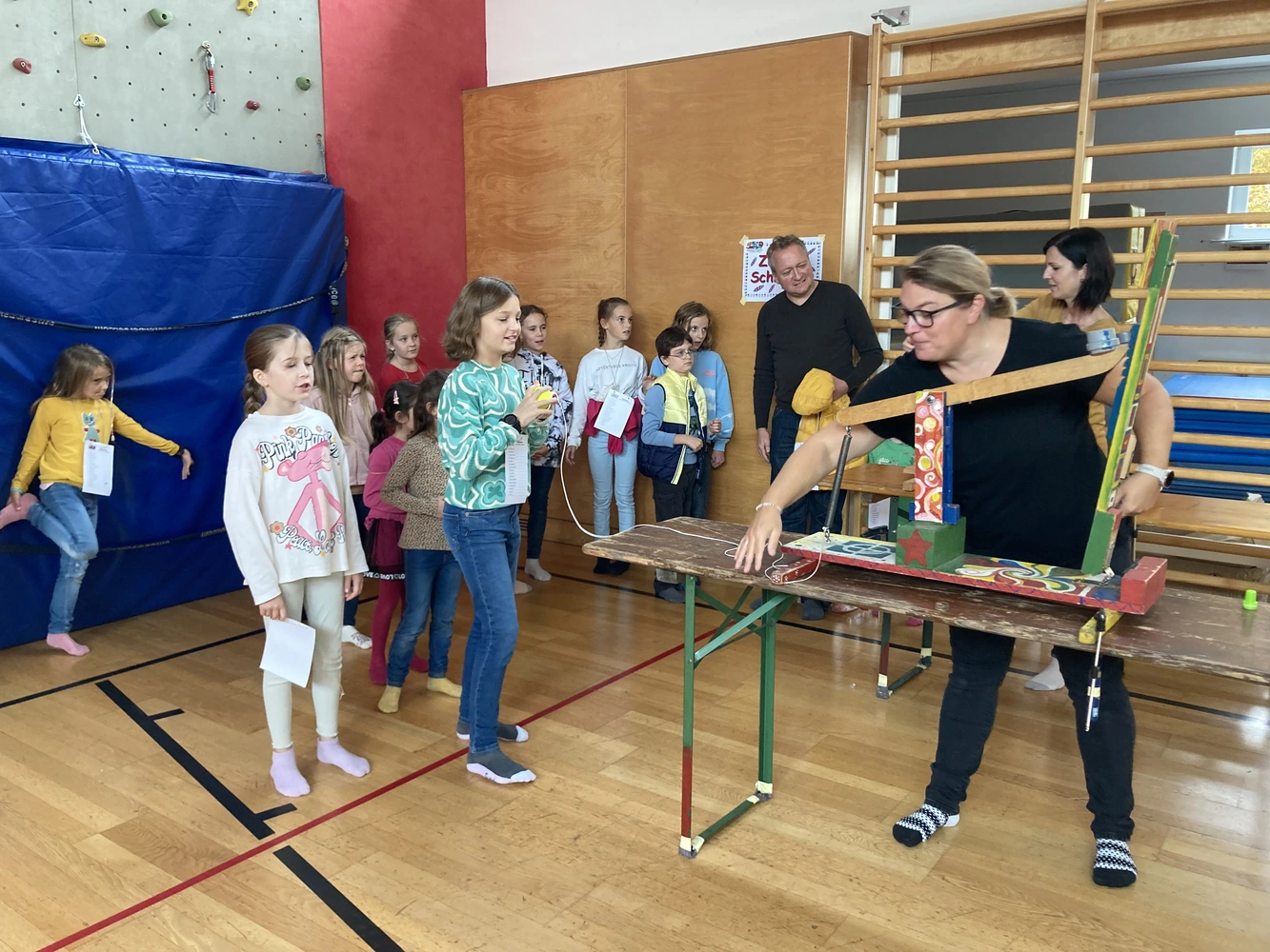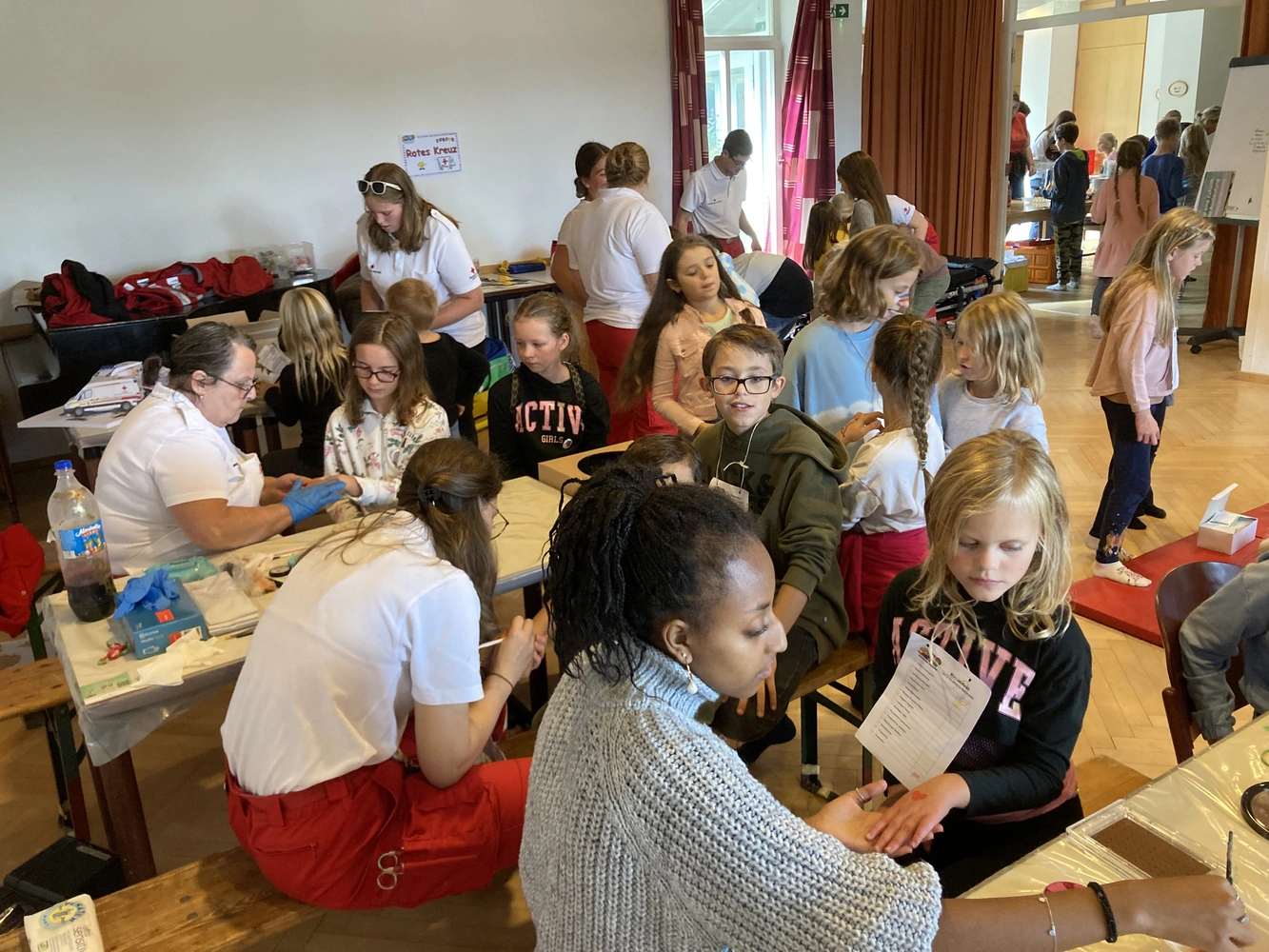 Am 2. Oktober fand das Kinderfest für Jungscharkinder und Ministrant:innen der Dekanate Köstendorf und Thalgau bei uns in Neumarkt statt. Rund 130 Kinder, sowie ihre Begleiter:innen verbrachten den Nachmittag in Pfarrhof und VS Turnsaal. An den 15 Spielstationen wurde viel Geschicklichkeit und Kreativität sichtbar! Das Rote Kreuz schminkte „Wunden“ und zeigte den Kindern, wie Verbände anzulegen sind. Auch die richtige Beatmung und der Krankentransport im Notfall wurden erprobt. Zu den neuesten Hits wurde getanzt; und Allerlei Schönes gebastelt. Für einen guten Rhythmus im Pfarrhof sorgten die Trommler. Unsere Neumarkter Crew war Gastgeber-Pfarre und daher für die kulinarische VersorgungJ zuständig! Kuchen, Obst, Würstel und Getränke wurden an die vielen jungen Gäste ausgegeben. Der gemeinsame Gottesdienst mit BV Harald Mattel rundete den lustigen Nachmittag ab.